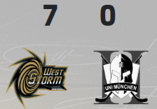West Storm dominierte das Spiel von Beginn an und setzte sich früh mit zwei Treffern ab. Auch im zweiten Drittel blieb das Team spielbestimmend und baute die Führung konsequent aus. Die Gäste aus München traten trotz des Rückstands stets fair und ausgesprochen angenehm auf. Im Schlussabschnitt fielen weitere Tore, wodurch der Vorsprung deutlich anwuchs. Am Ende stand ein souveräner 7:0‑Erfolg in einem sehr freundlichen und sportlichen Duell.